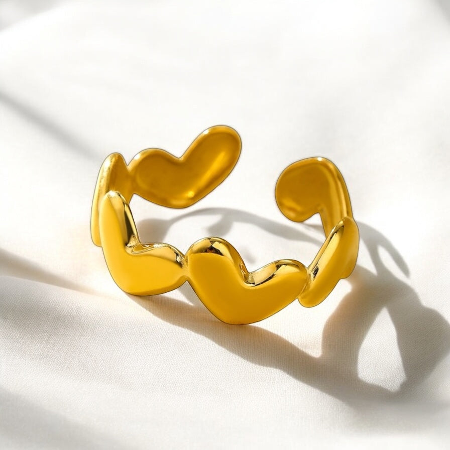 LOVE is a beautiful geometric ring, 18 k goldplated featuring a heart star design that symbolizes love and luxury. Made from high-quality materials, it is tarnish-resistant and has an open design for a comfortable fit.