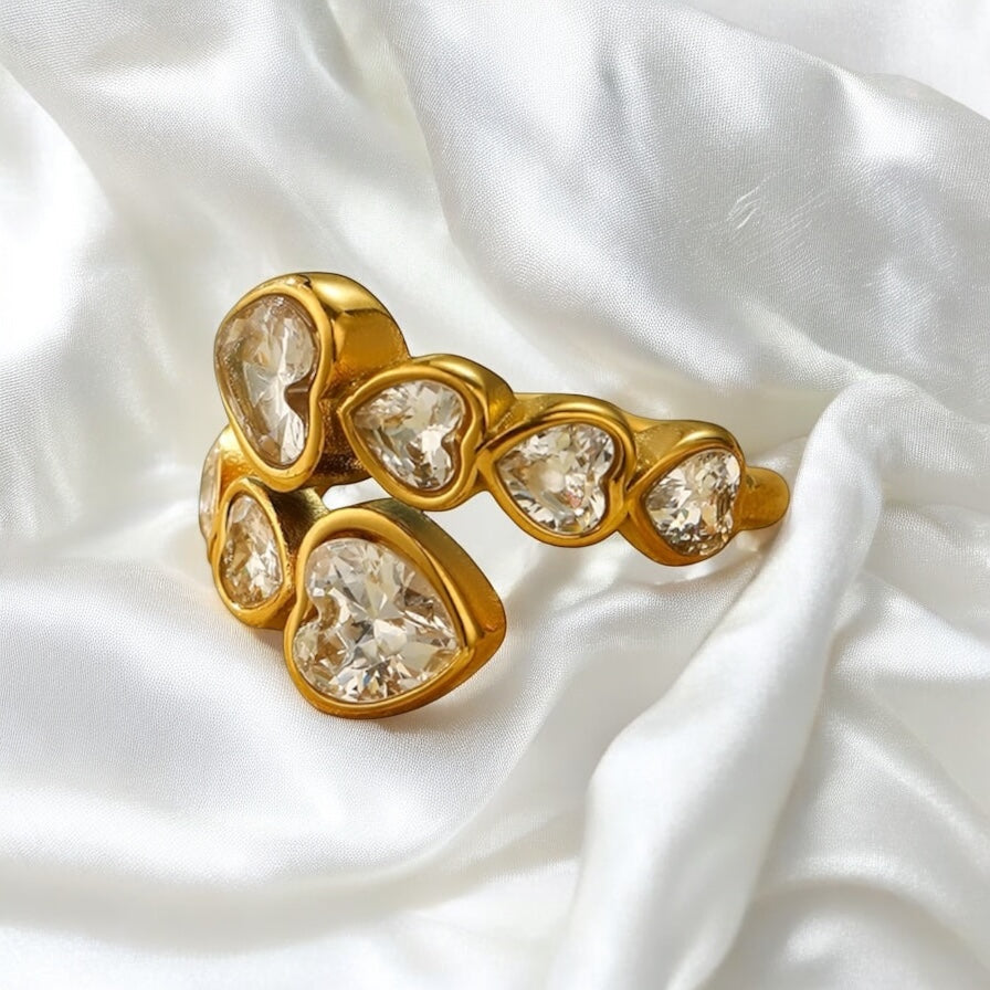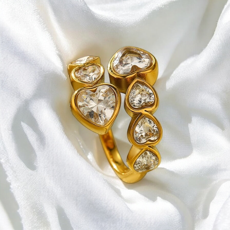 Bague en forme de cœur réglable en acier inoxydable plaqué or 18 carats, de haute qualité, en zircone